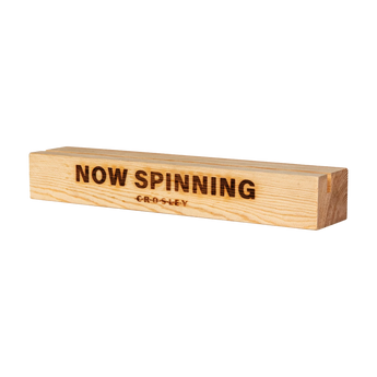 Sturdy wooden record stand with 'Now Spinning' on the front. Made from a solid piece of wood which can accomodate single LPs and most double LPs.
